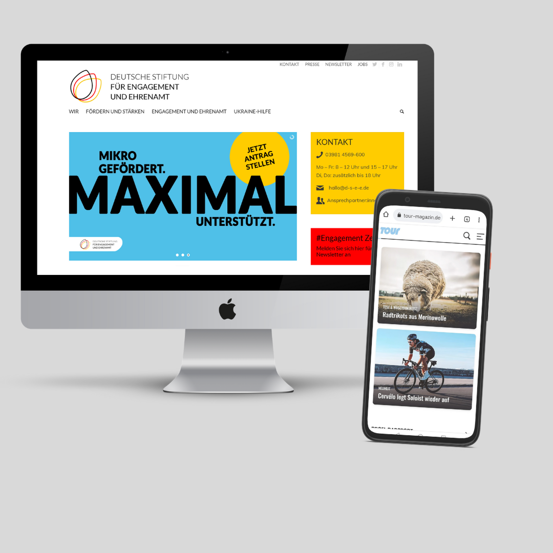 Nur, wer Themen crossmedial denkt und Inhalte auf verschiedenen Plattformen passgenau platzieren und vermarkten kann, sticht aus am Medienmarkt heraus. Beim Delius Klasing Verlag konnte ich mit Content-Offensiven bei Youtube und Instagram (TOUR Magazin) und einer titelübergreifenden Digitalstrategie zur Vernetzung von Print- und Digitalinhalten beitragen, nutzerfreundlicheres CMS mit mobiler Ausrichtung inklusive. Für die Deutsche Stiftung für Engagement und Ehrenamt erarbeitete ich ein Konzept zur Neuausrichtung der Website mit einer übersichtlicheren Darstellung der Förderprogramme und Serviceangebote unter Berücksichtigung von Barrierefreiheit.